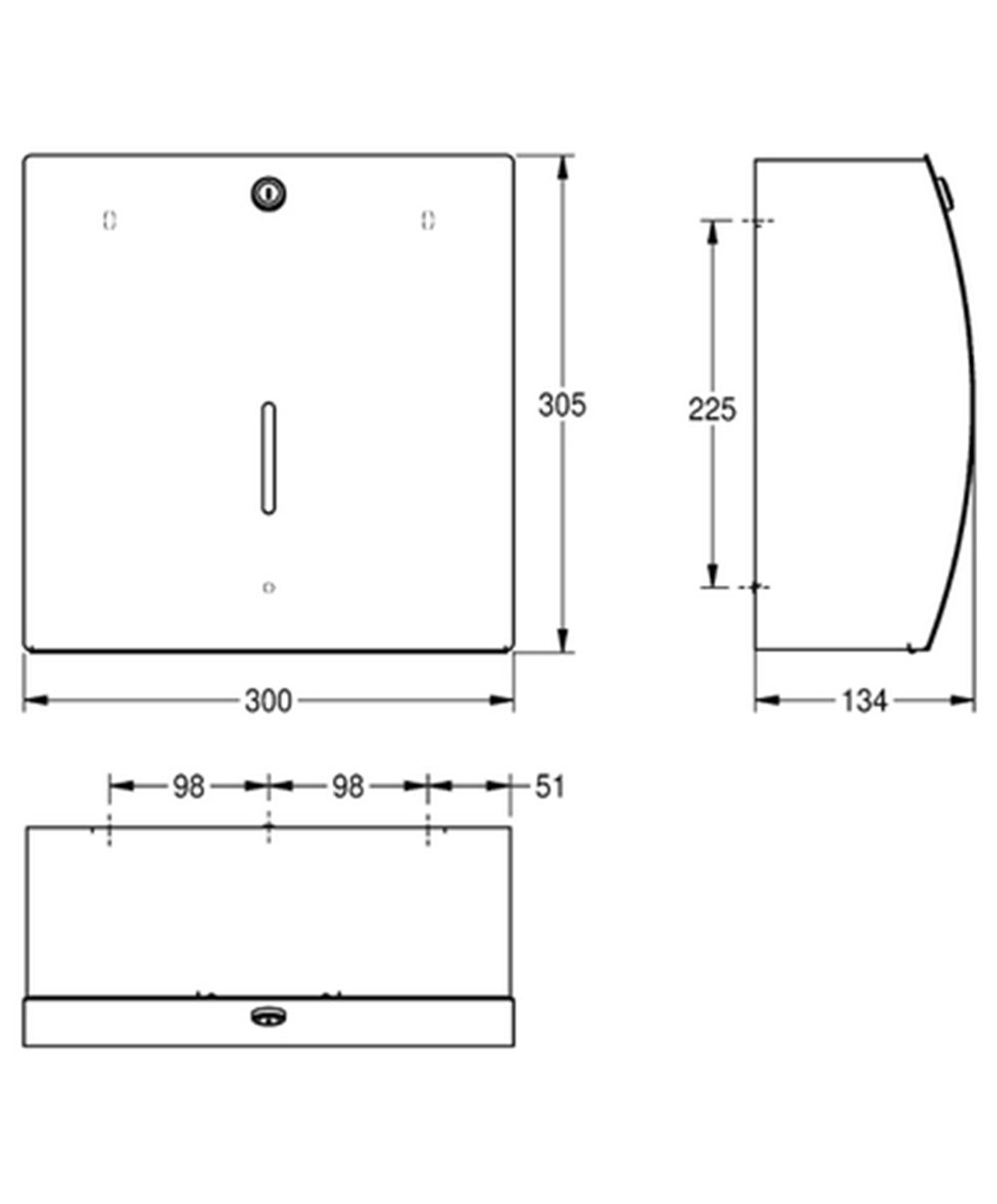 Stratos Distributeur mural d'essuie mains en papier inox satiné 1,5 mm finition de surface InoxPlus (easy to clean) contenance 300-400 feuilles (selon épaisseur papier) (L × H × P) : 300 × 305 × 134 mm