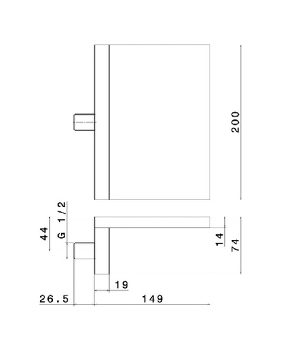 Douche de tête cascade fixation murale dimension totale : 74 x 200 mm