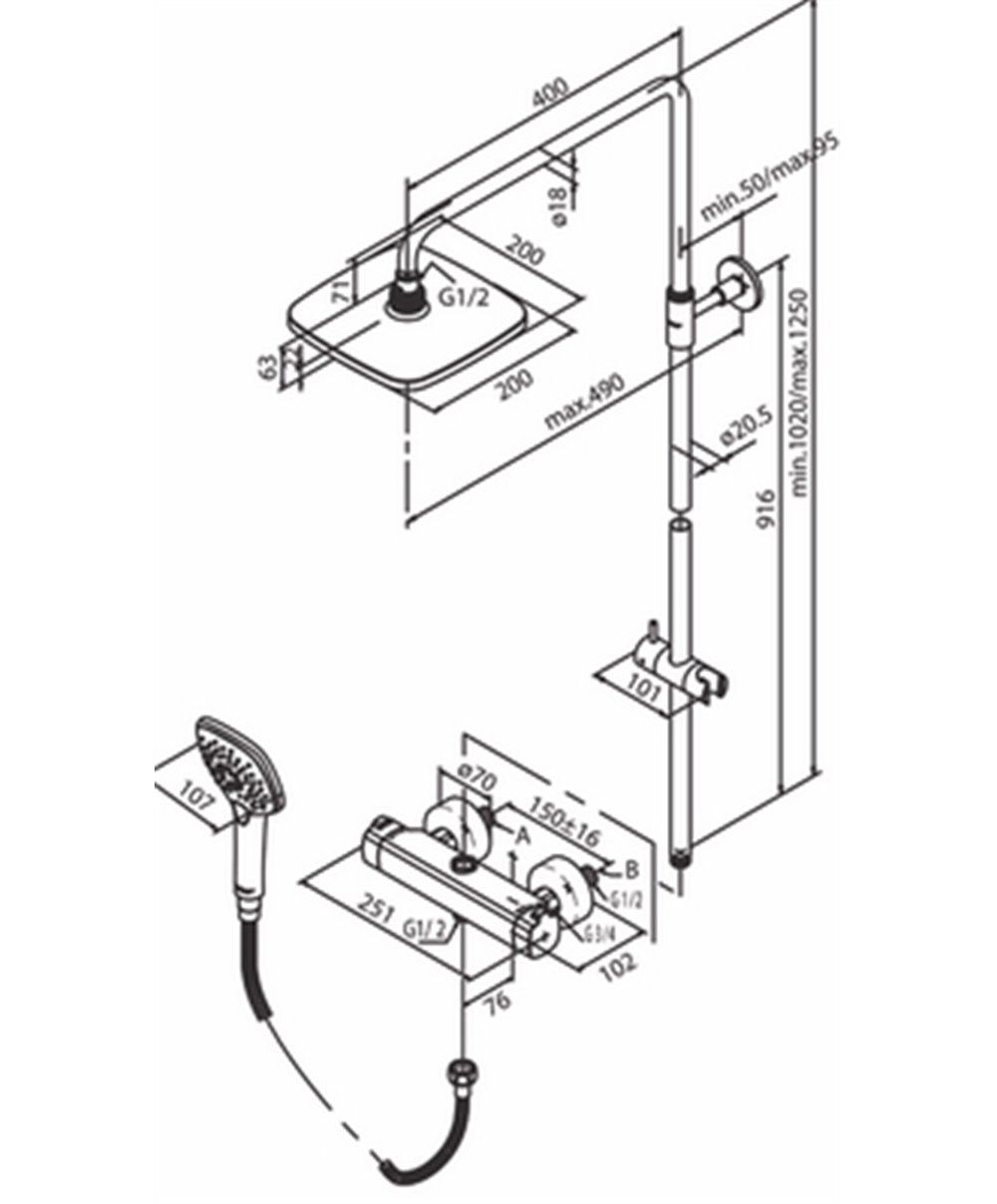 Damixa 579540000 Ensemble colonne Douche thermo téléscopique chrome