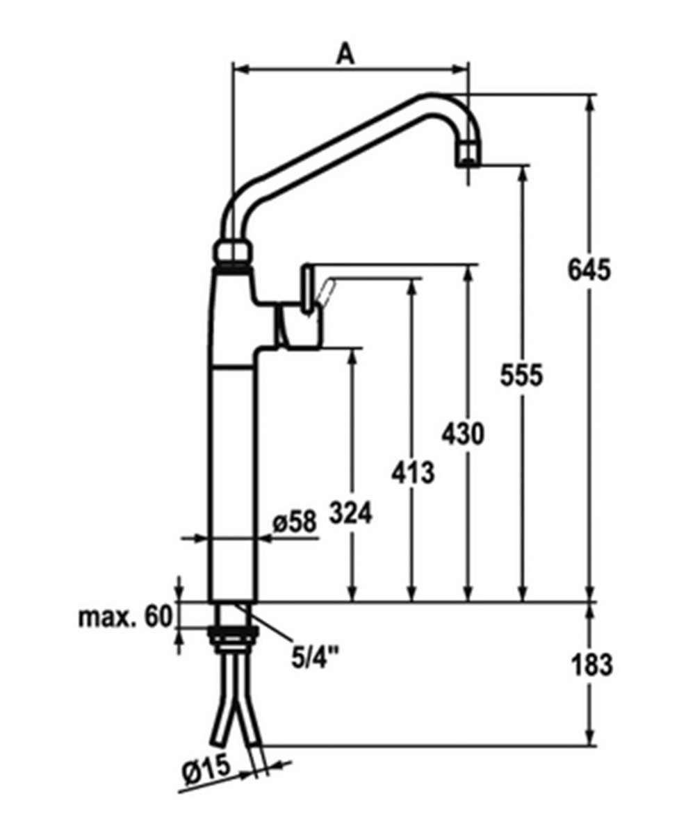 Gastro Mitigeur sur colonettes à bec 300mm et levier long bec orientable 120° Kwc cartouche L 39 - universelle raccords colonnette ½" x ¾" L 55 A =...