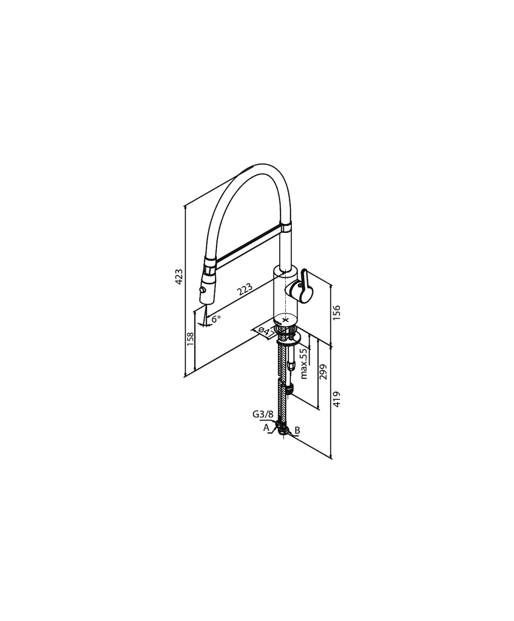 Newform Libera 63930 31 mitigeur évier douchette sur flexible look inox