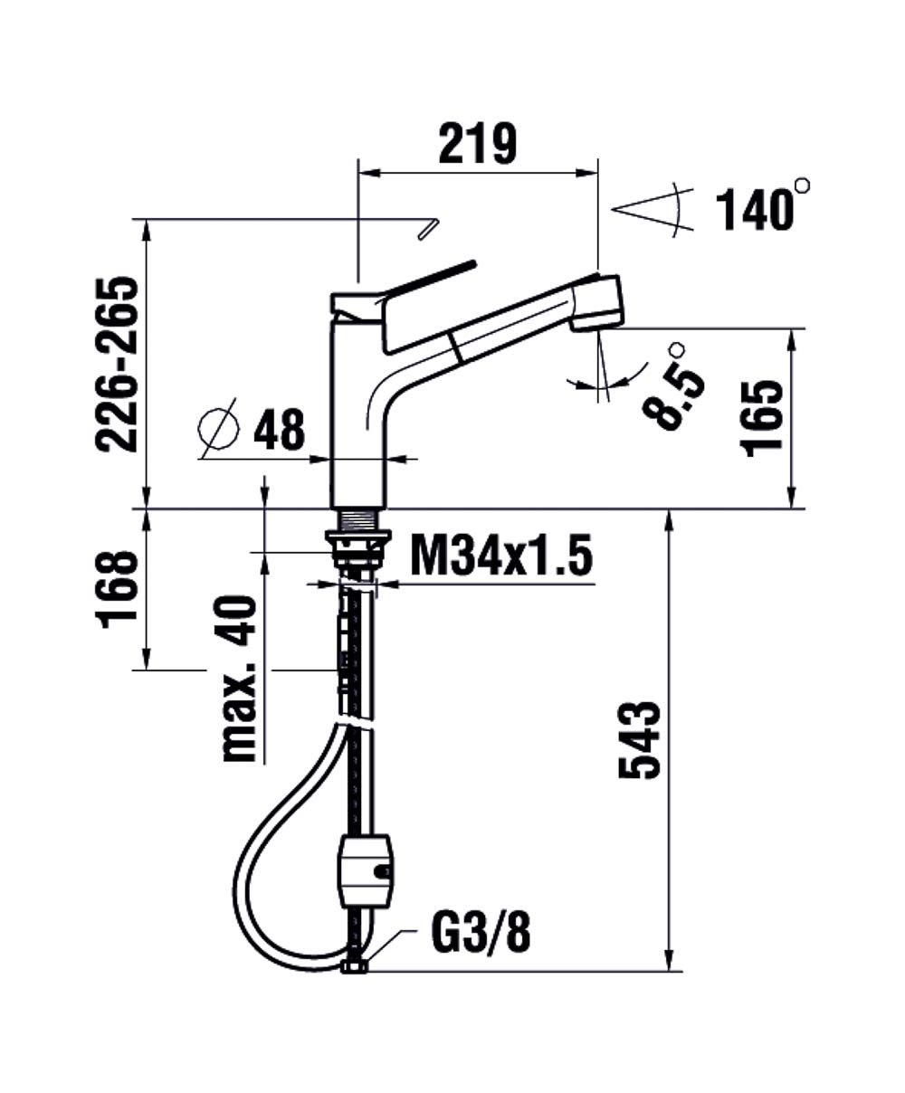 Mitigeur de cuisine spécial fenêtre bec mobile 150° saillie : 225 mm cartouche M 35 S - Z 537 584 Hauteur libre : 60 mm 124920 124920