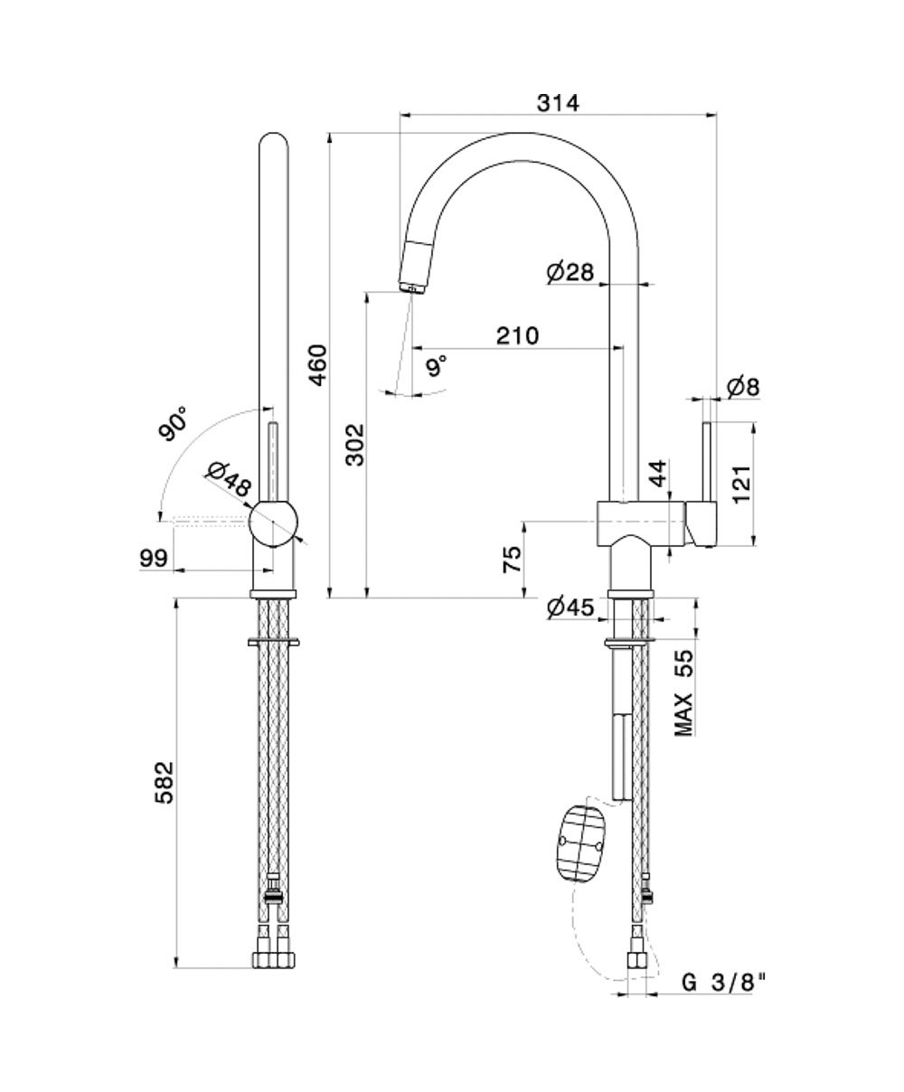 Eve mitigeur à levier avec : col de cygne bec extractible hauteur : 419 mm saillie : 225 mm mécanisme Z 534 836 115 0308 181 - 115 0308 183 Hauteur...