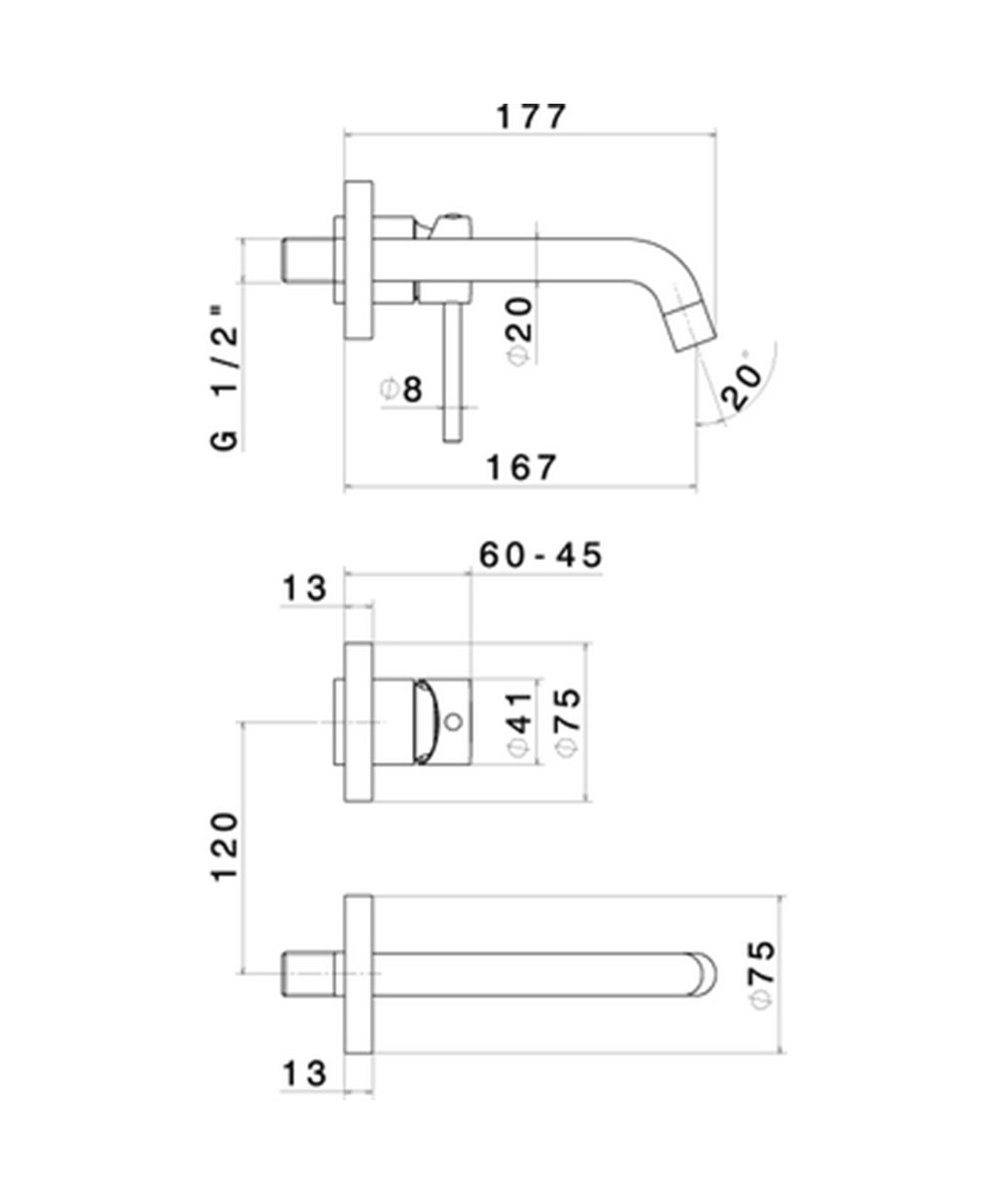Façade pour mitigeur de lavabo à encastrer - bec fixe 167mm à compléter avec le corps encastré 27852