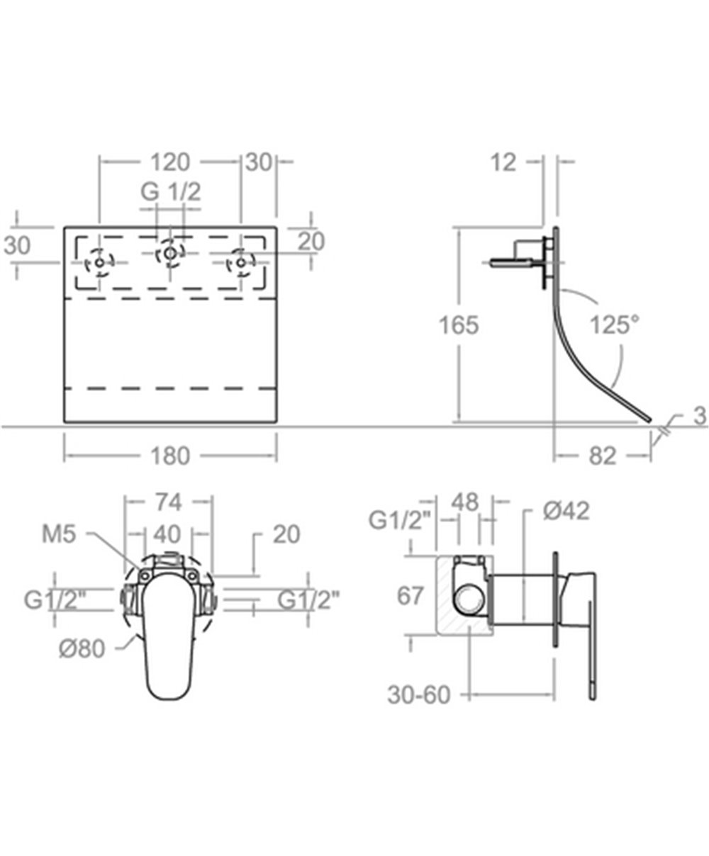 Façade pour mitigeur de lavabo à encastrer - bec fixe 167mm à compléter avec le corps encastré 27852