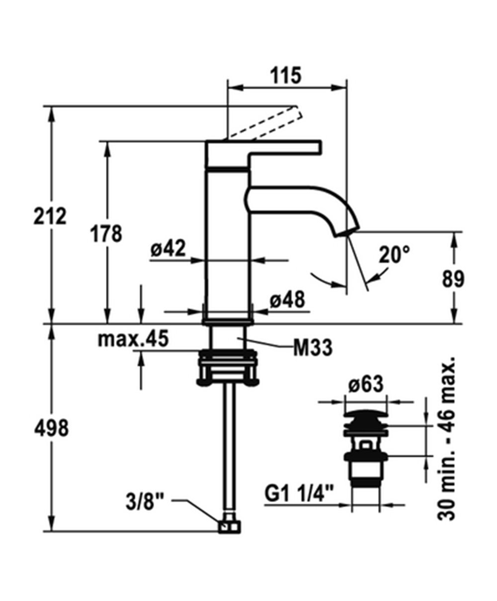 Mitigeur de lavabo saillie 125 mm sans vidage mécanisme 14720