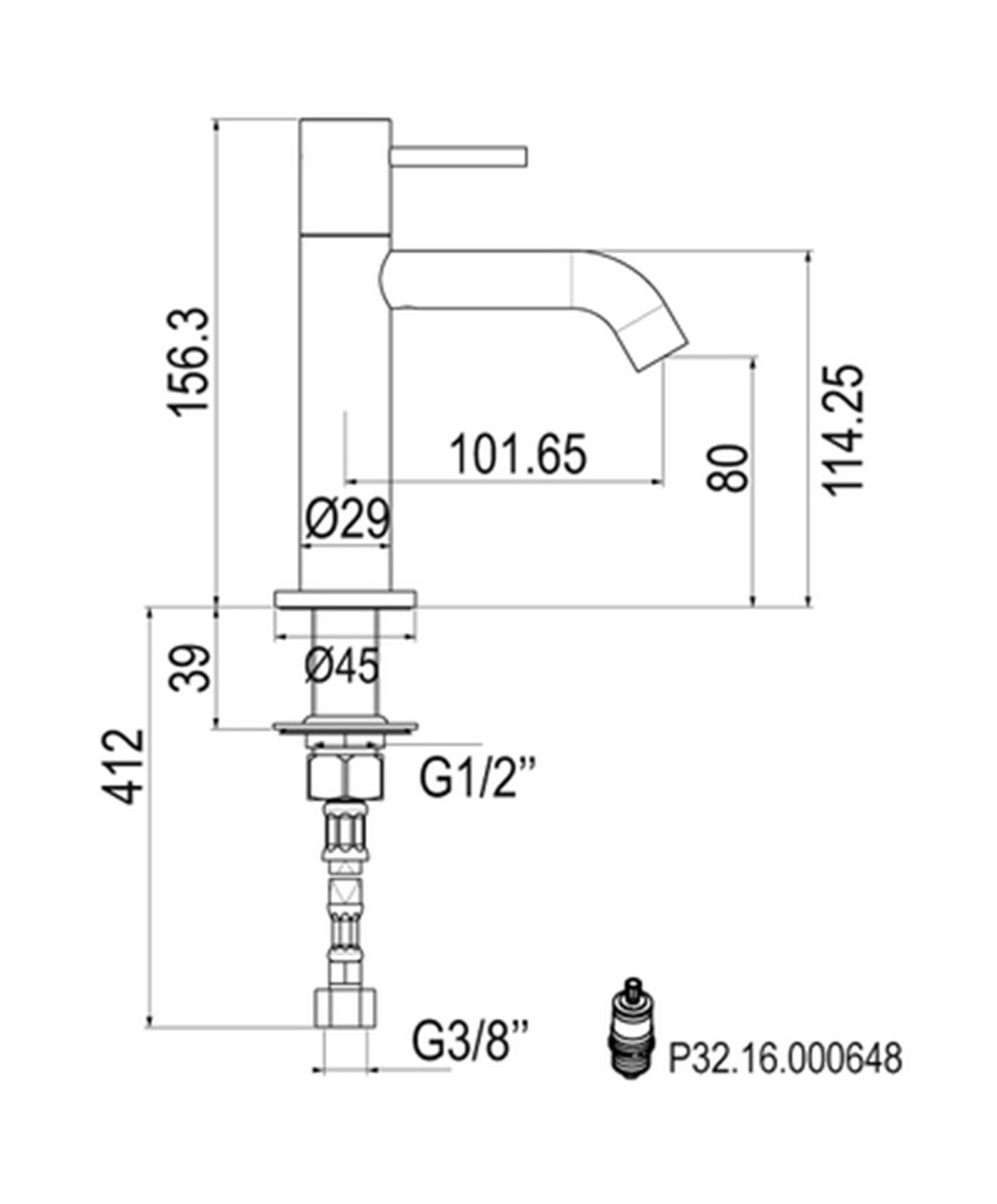 Robinet de lave-mains une seule eau - froide mécanisme 16.000648