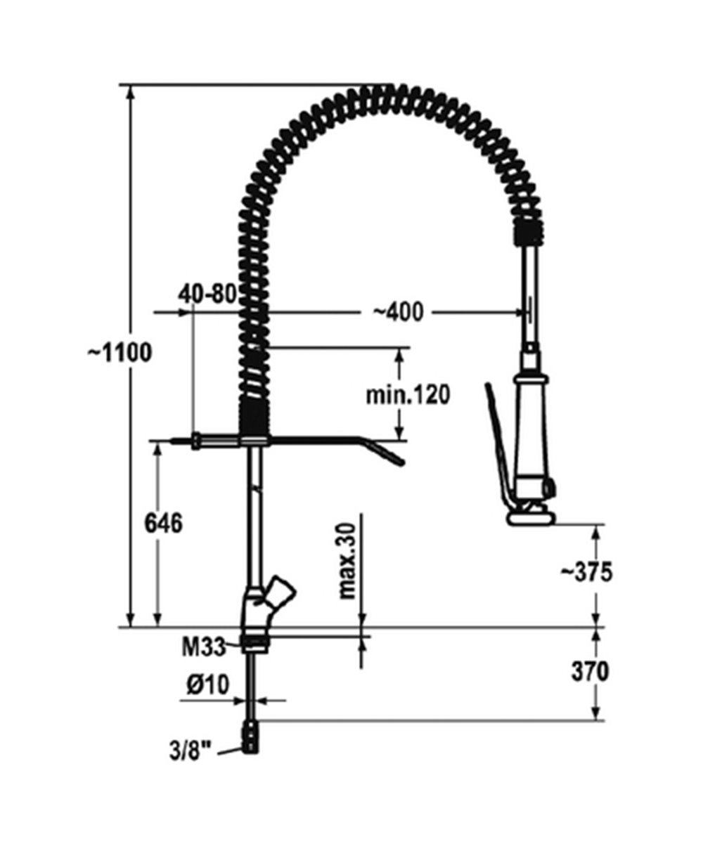 Kwc gastro K.24.41.60.000C06 - 100962 mélangeur pro + preflush chrome