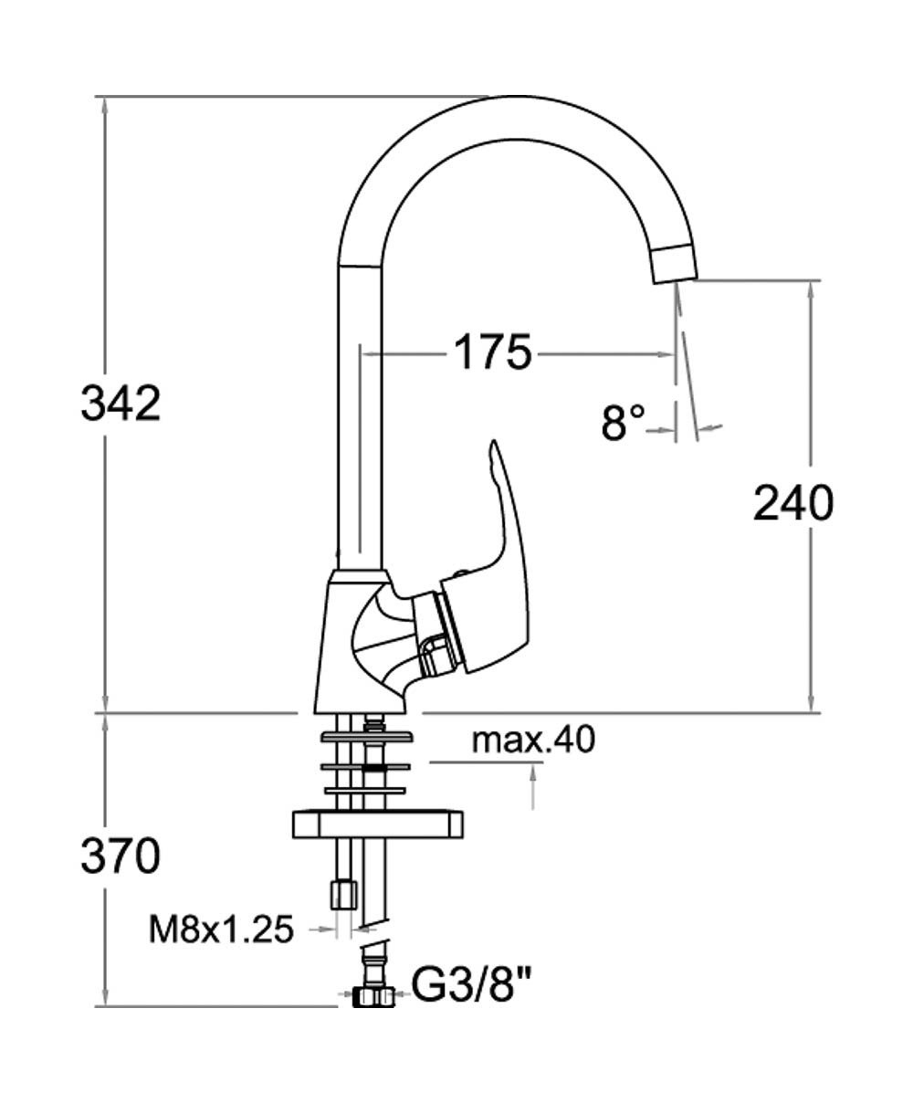 Inox mitigeur à levier avec :