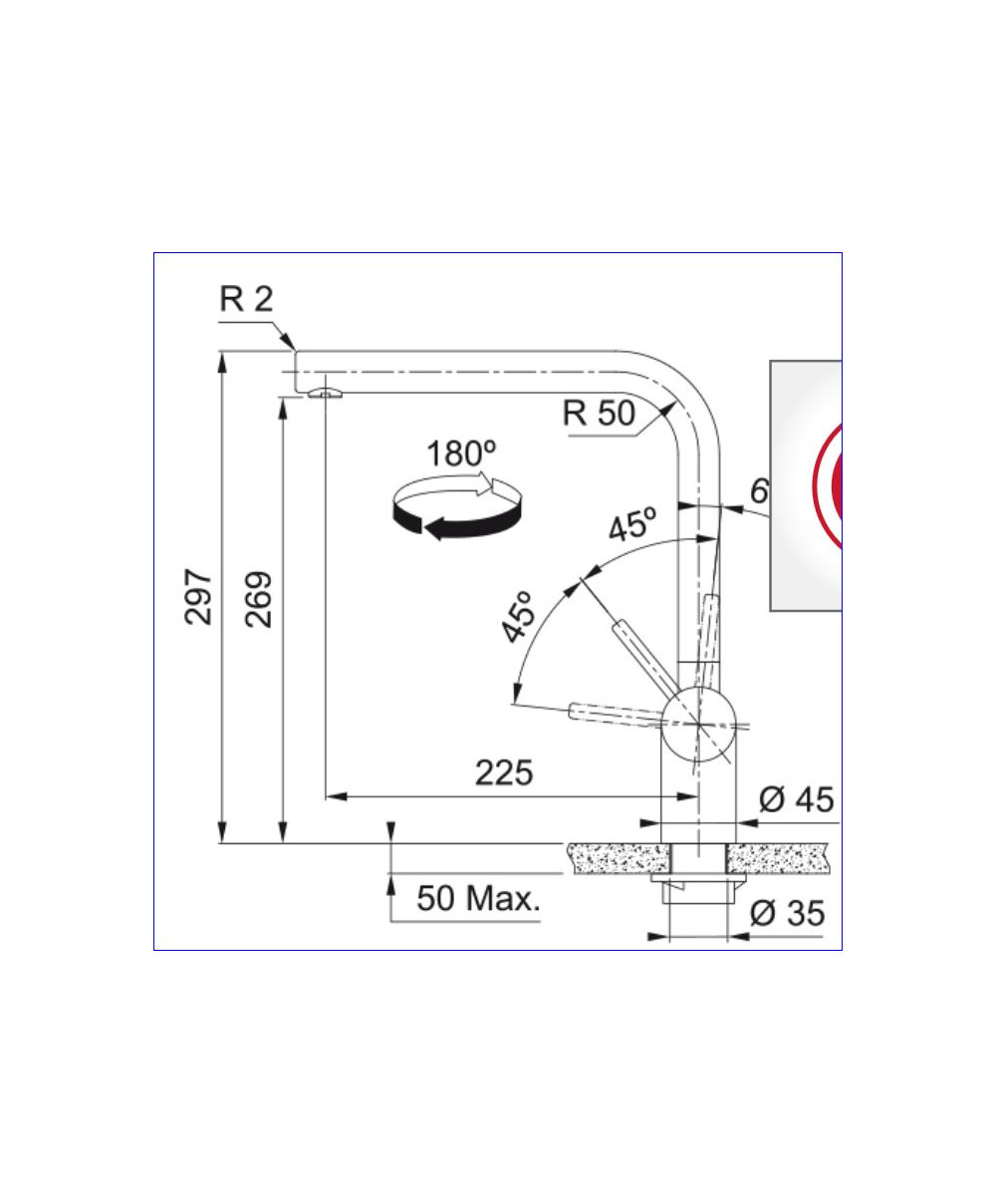 Mitigeur d'évier avec : bec mobile : 180° hauteur : 297 mm - saillie : 225 mm raccordement par flexibles