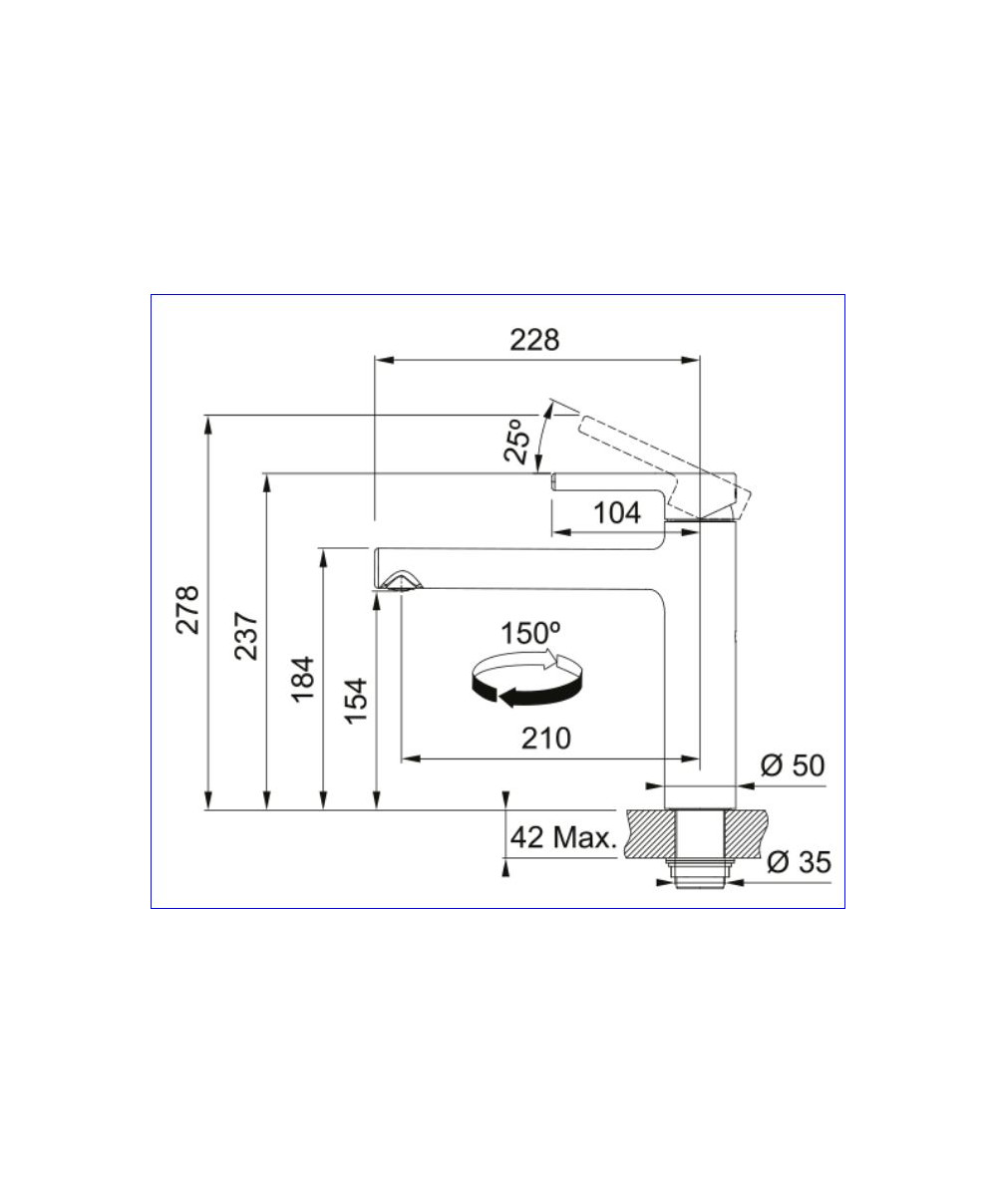 Mitigeur d'évier avec : bec mobile : 150° hauteur : 278 mm - saillie : 210 mm raccordement par flexibles
