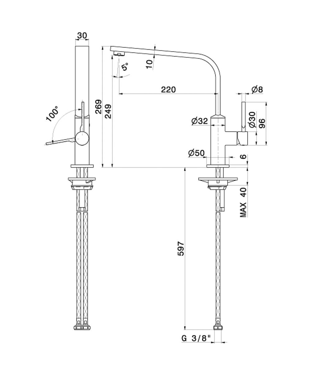 Newform Maki 71821 M0 077 Mitigeur cuisine à bec Exclusive Metal Carbon satin