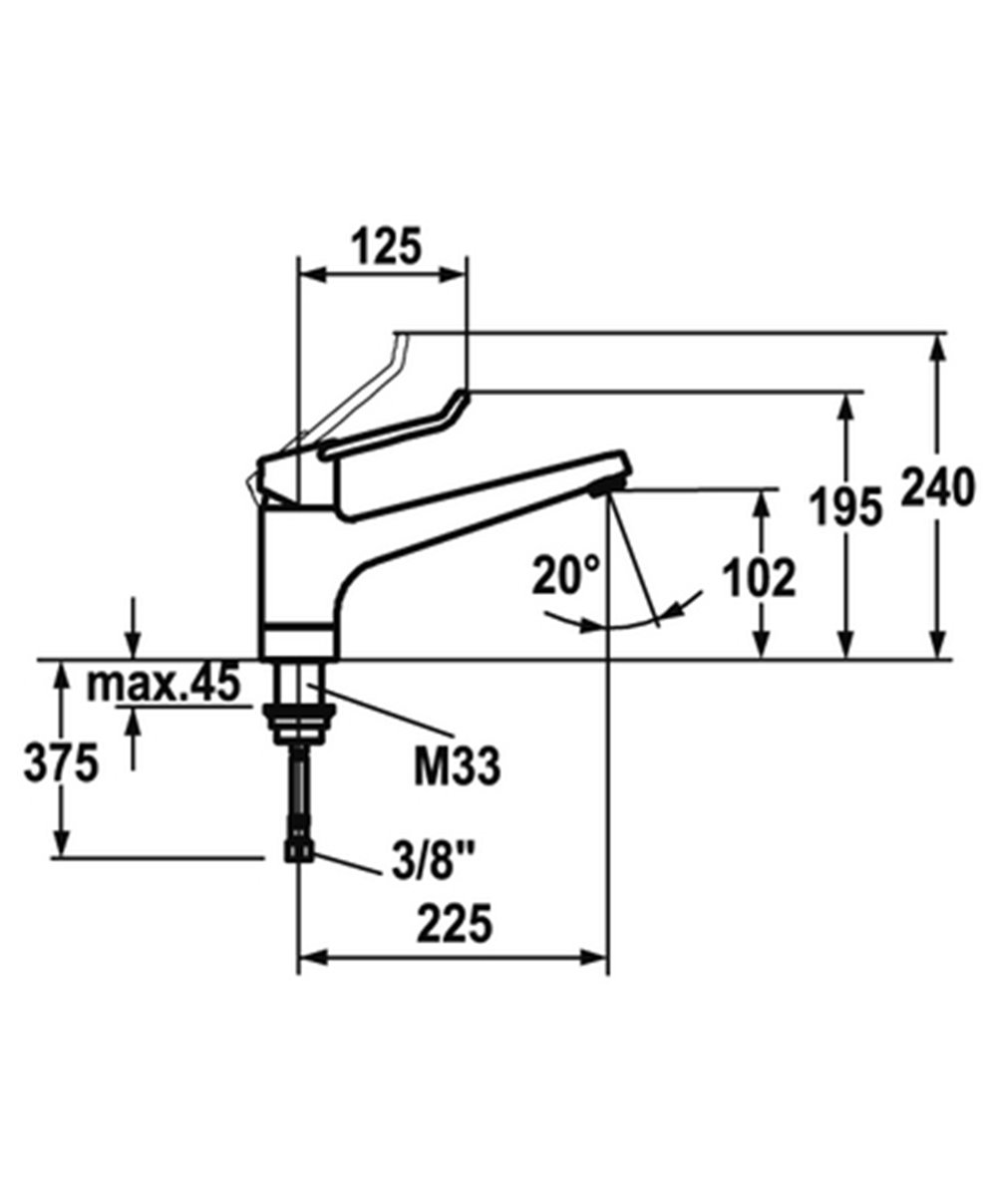 Mitigeur à levier long ouvert douchette extractible saillie : 225 mm cartouche M 35 S raccordement flexible 3/8" 115.0635.411