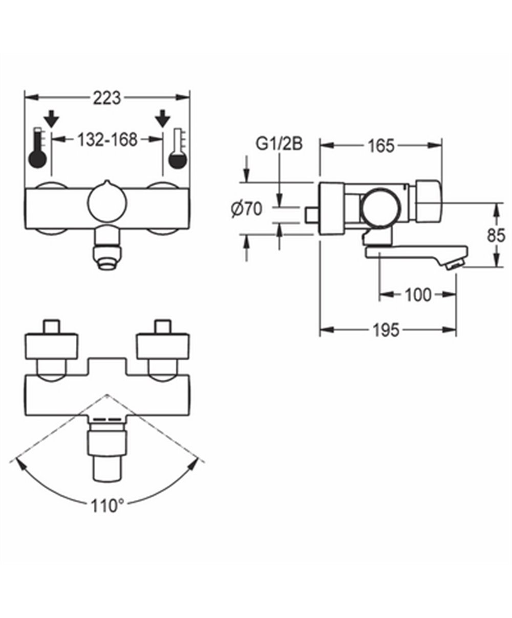 Mitigeur mural à fermeture automatique bec mobile 135, 195 ou 255 mm temporisation réglable avec régulateur de débit intégré de 6,0 l/min (F5SM1004, F5SM1003, F5SM1005) ou de 3,0 l/min (F5SM1008, F5SM1009, F5SM1010) raccordement sur les arrivées d’eau chaude et ’eau froide