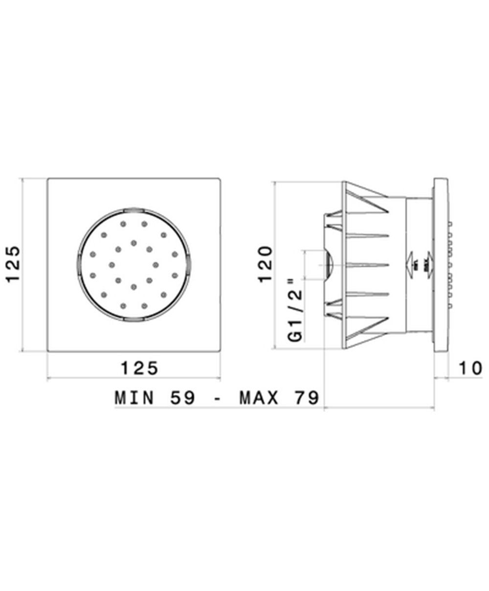 Douchette latérale carrée à encastrer - ABS