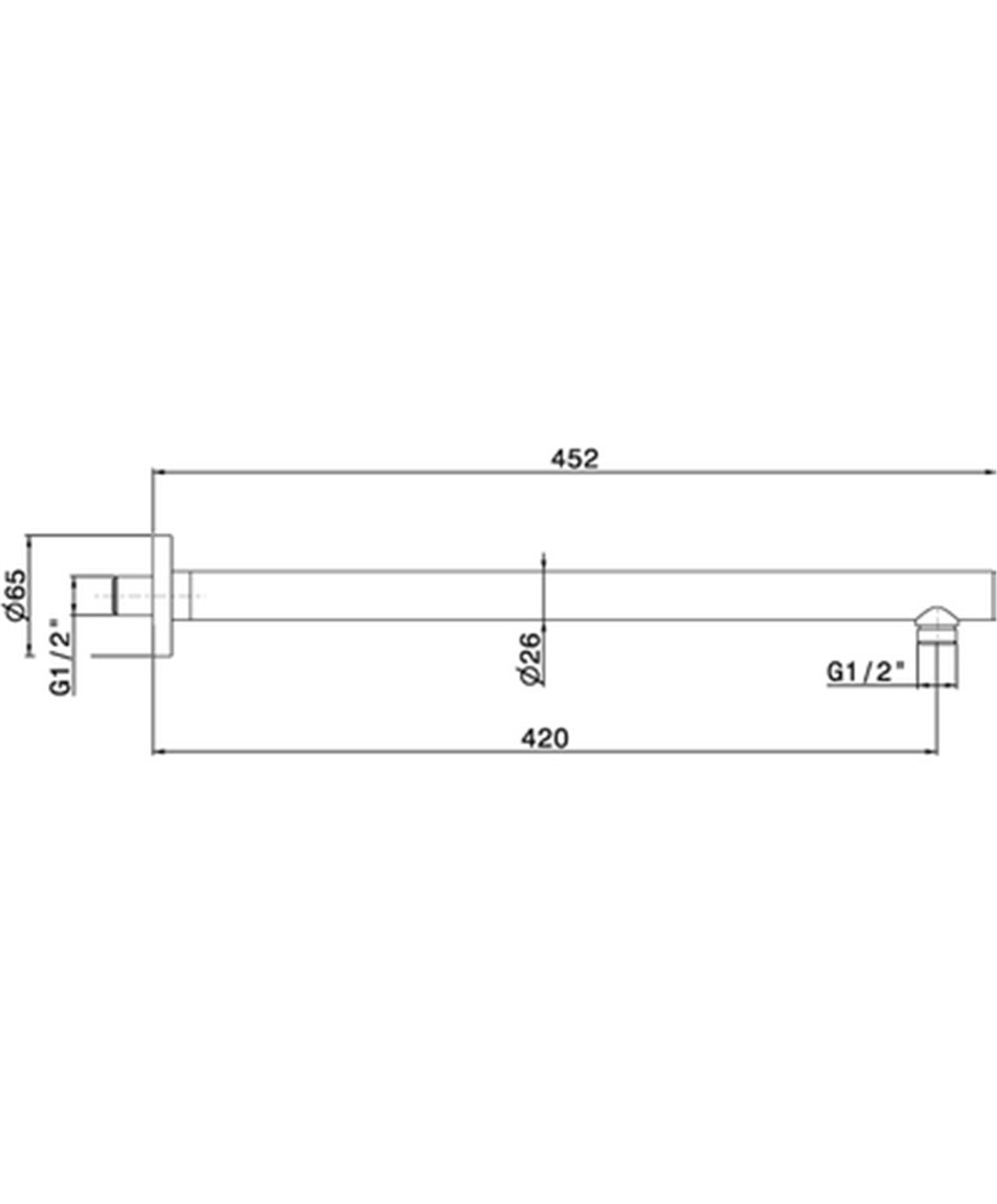 Bras de douche vertical 125, 225 ou 325 mm rosace carrée 112.0315.841 - 112.0315.843 - 112.0315.845