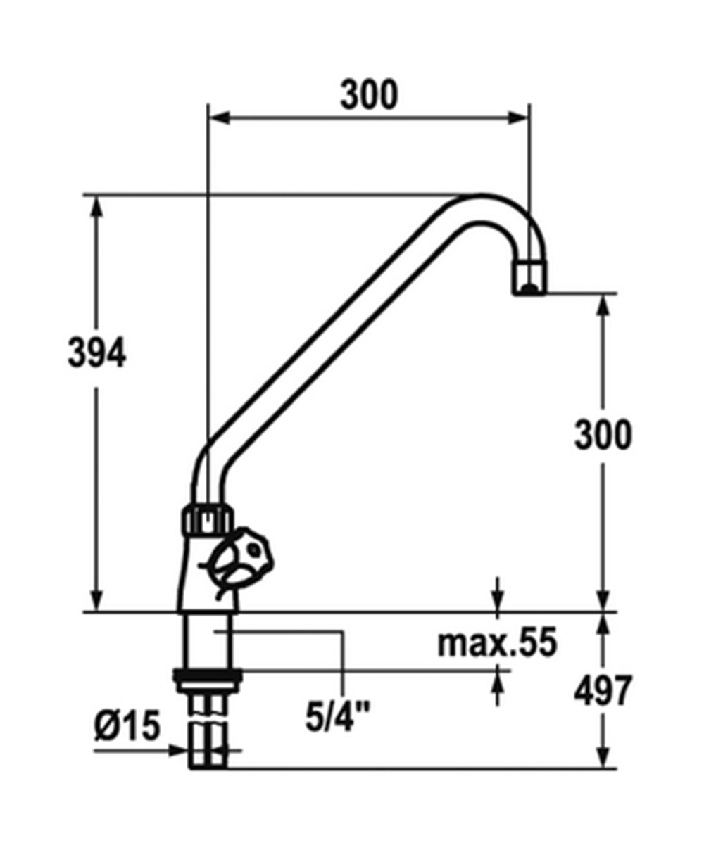 Gastro Mitigeur sur colonettes à bec 300mm et levier long bec orientable 120° Kwc cartouche L 39 - universelle raccords colonnette ½" x ¾" L 55 A =...