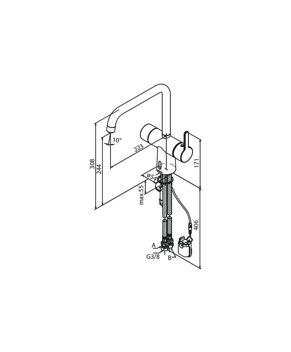 Mitigeur d'évier sans contact hauteur : 308 mm mécanisme céramique Petit support de batterie - fixation par Velcro