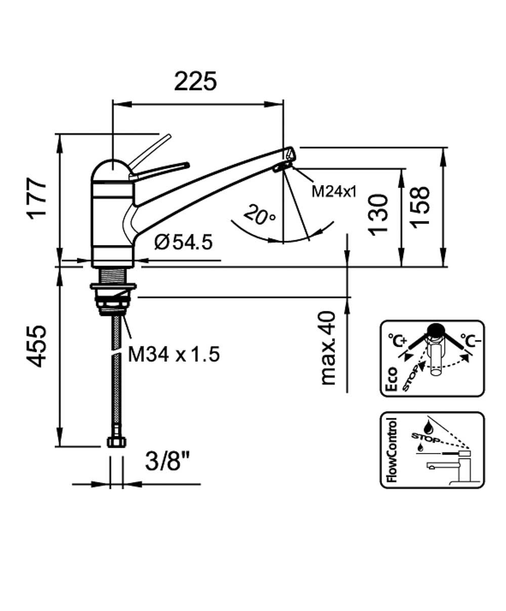 Luna-E Mitigeur d'évier à levier bec mobile 160° saillie : 225 mm - hauteur : 248 mm raccordement flexibles cartouche M 35 123818 - 115 0605 194 -...