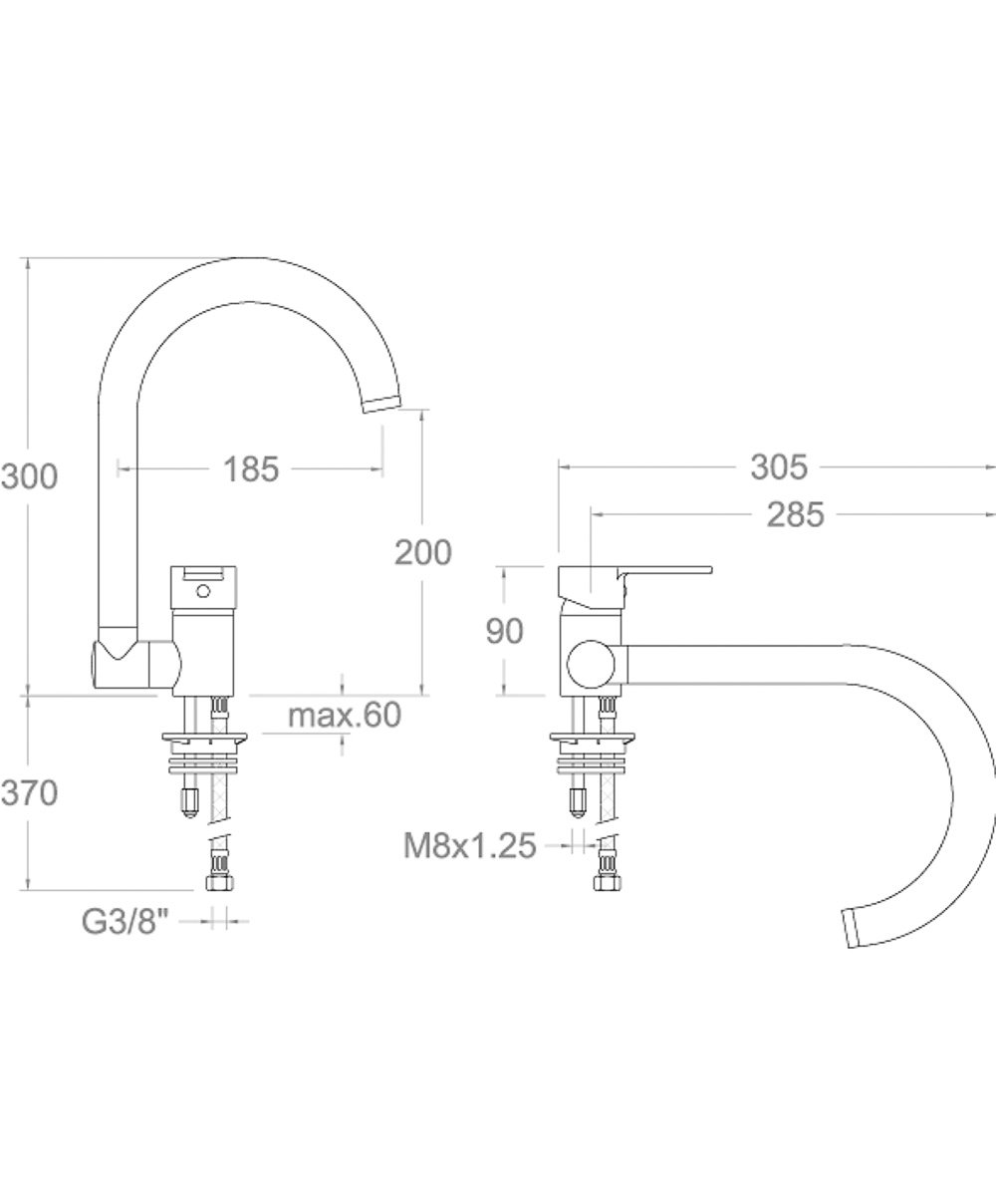 Newform Maki 71820 M0 077 Mitigeur cuisine à bec Exclusive Metal Carbon satin