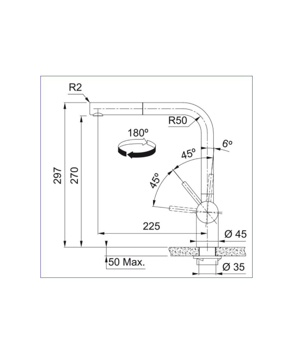 Mitigeur d'évier avec : poignée mousseur sur flexible bec mobile : 180° hauteur : 297 mm - saillie : 225 mm raccordement par flexibles