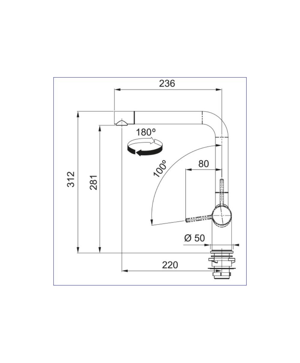 Mitigeur d'évier avec : bec mobile : 180° hauteur : 312 mm - saillie : 220 mm raccordement par flexibles