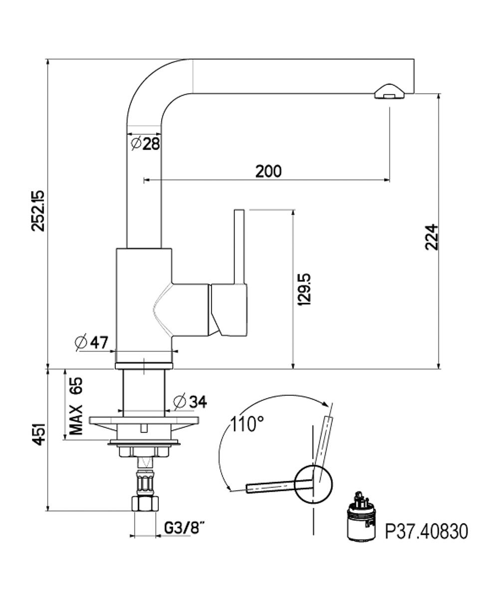 Newform N21 71730 M0 077 mitigeur évier à douchette + 3 trous Exclusive Metal Carbon satin