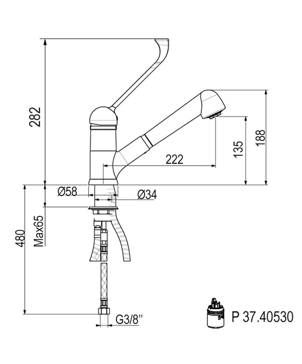 Gattoni 6012365M-105519MCO mitigeur évier à douchette + lev med Chrome