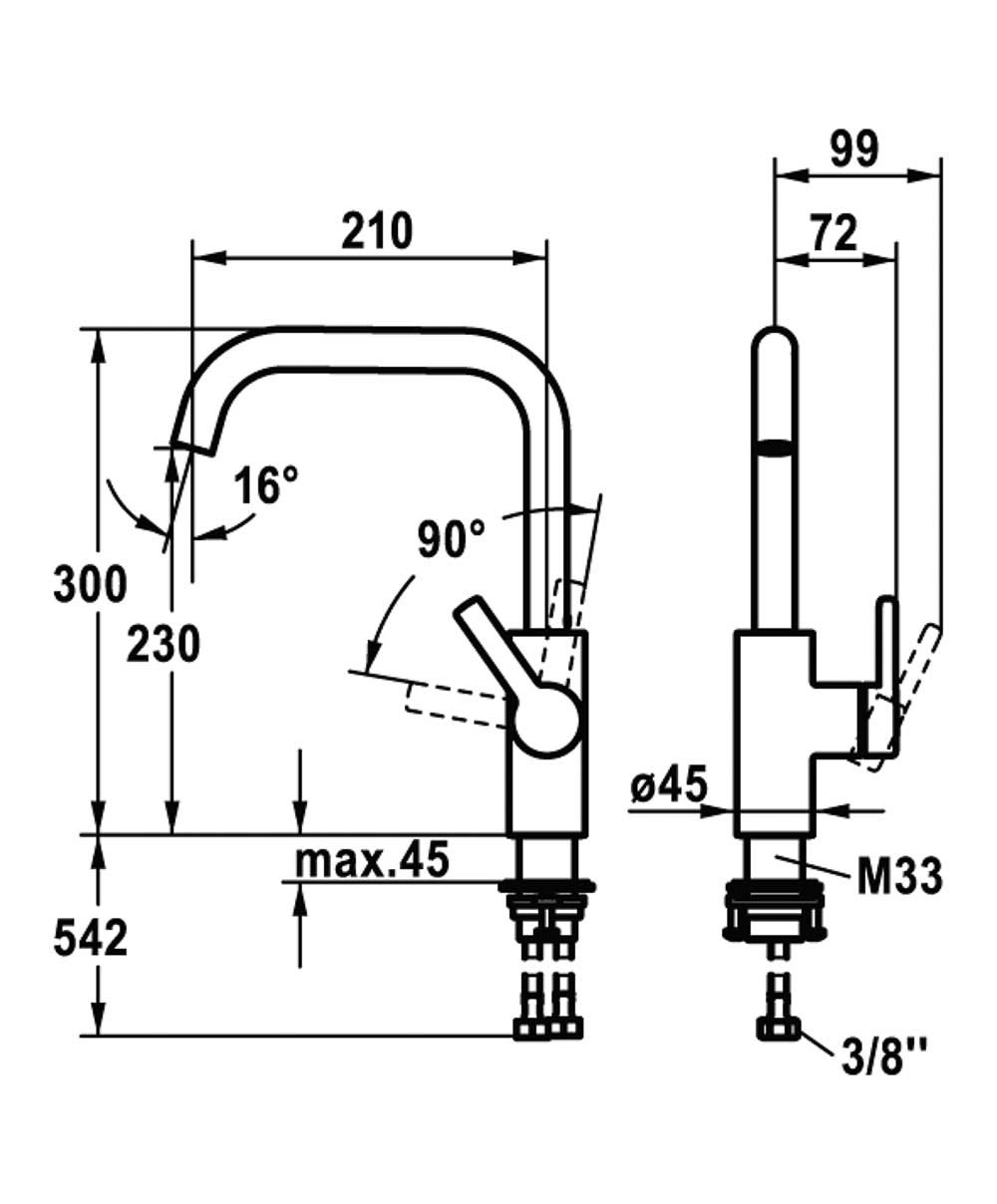 Luna-E mitigeur d'évier à levier bec orientable 360° , limitable à 150° saillie 210 mm cartouche M 35 S 115 0603 255 - 115 0603 256 125131