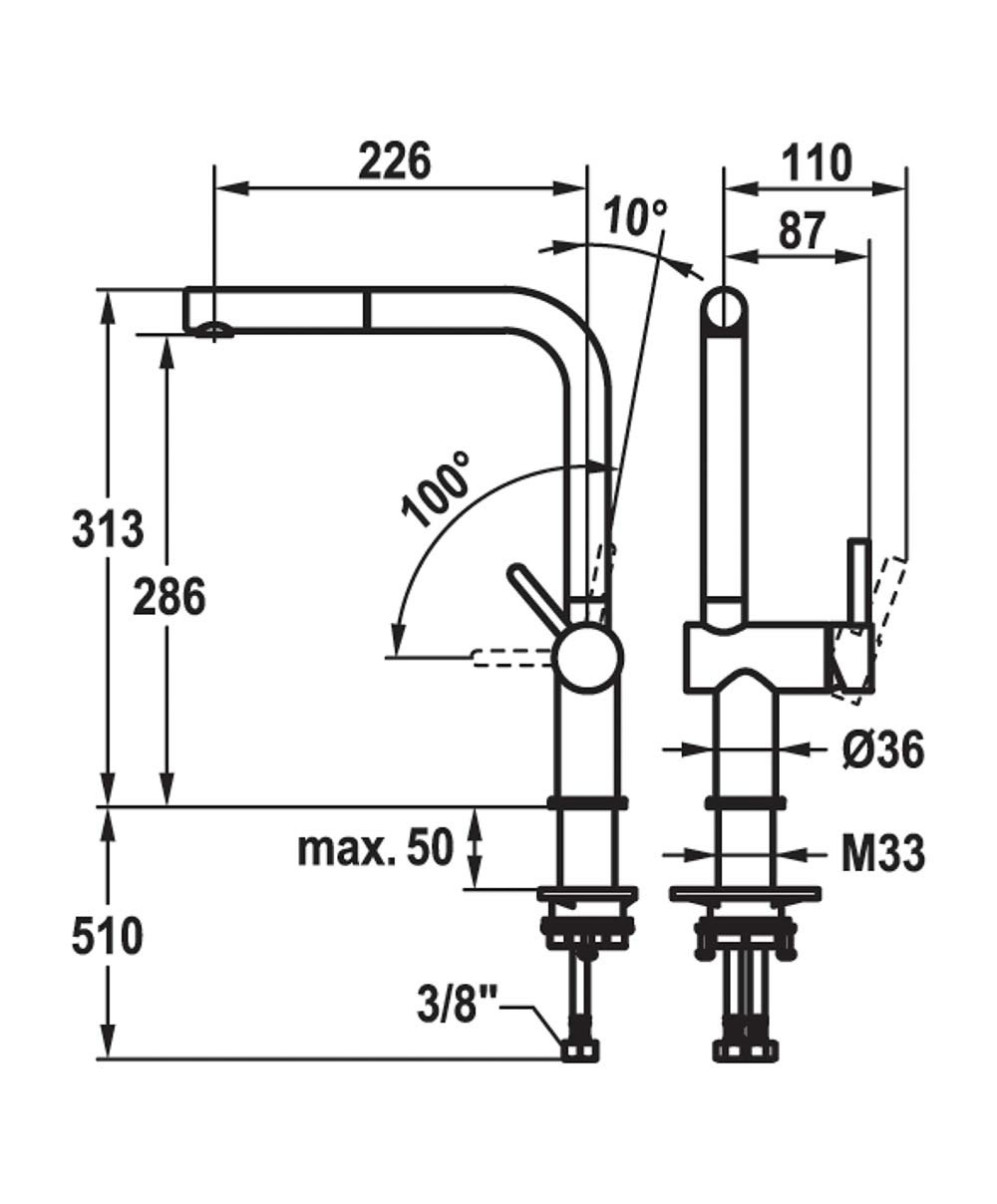 saillie : 226 mm - hauteur : 313 mm