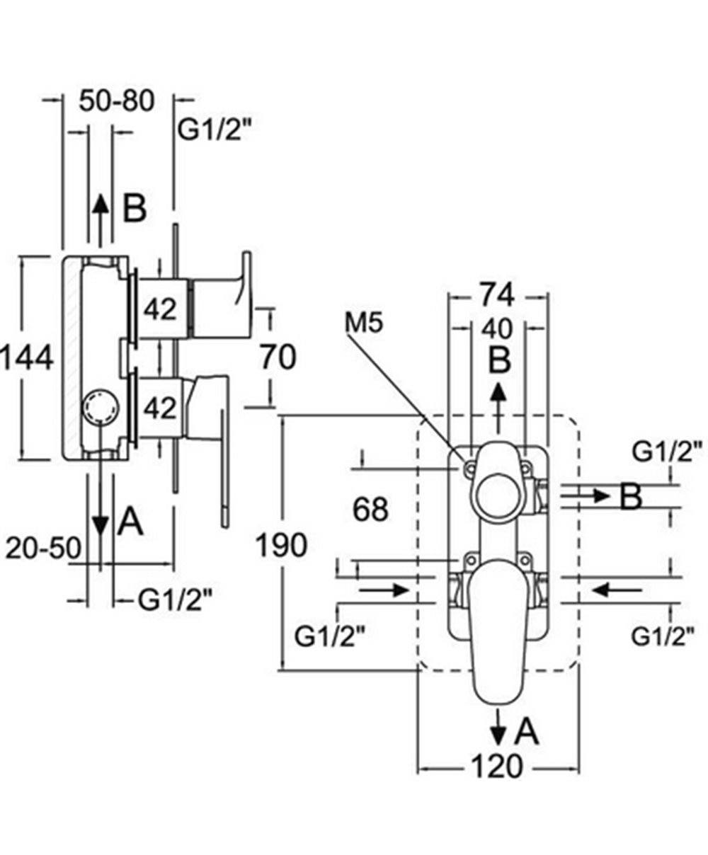Mitigeur de douche à encastrer 2 sorties cartouche 35100 (6689-2) + 4004