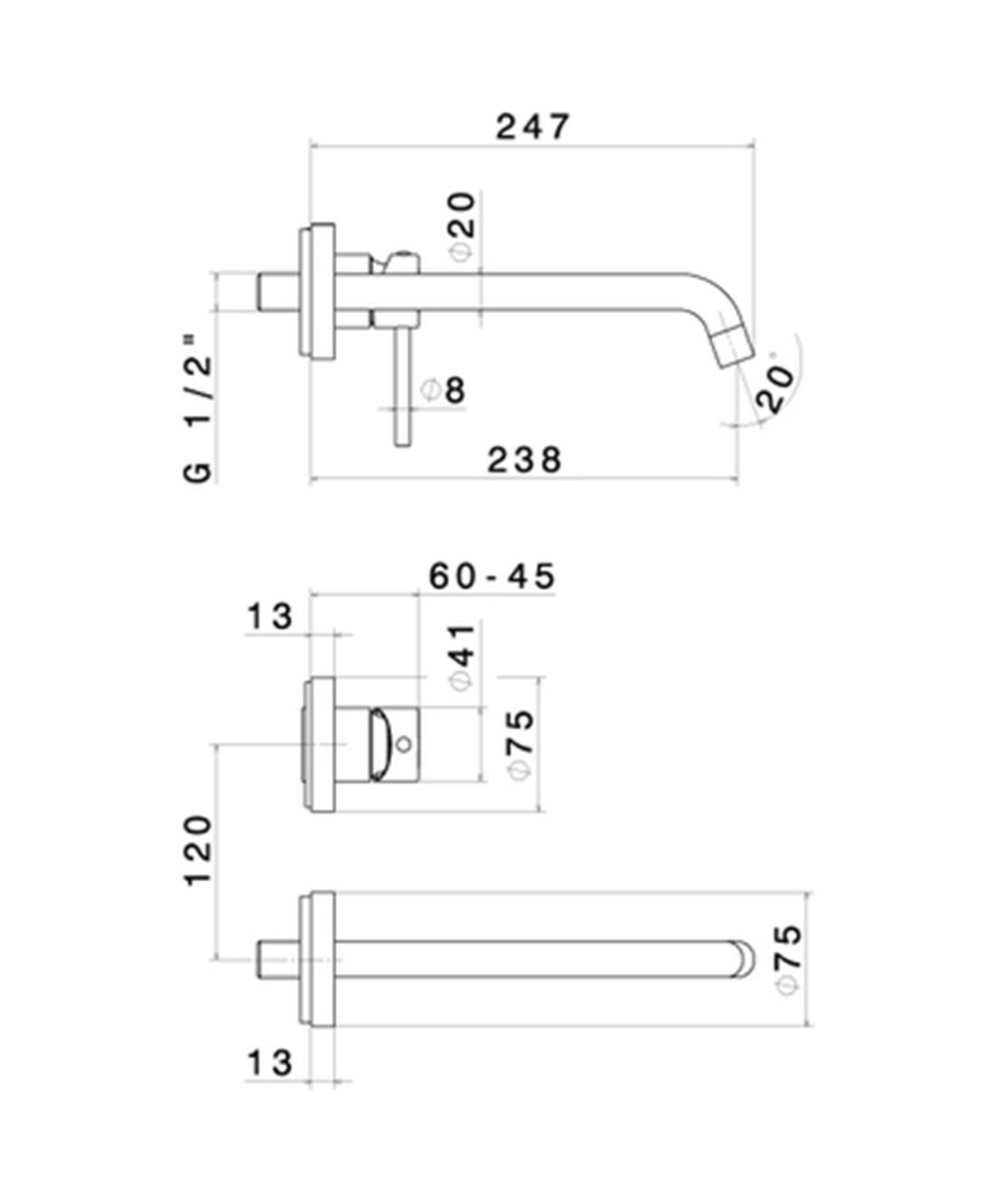 Nobili Live 00198 mitigeur lavabo à encastrer et bec 150 mm chrome