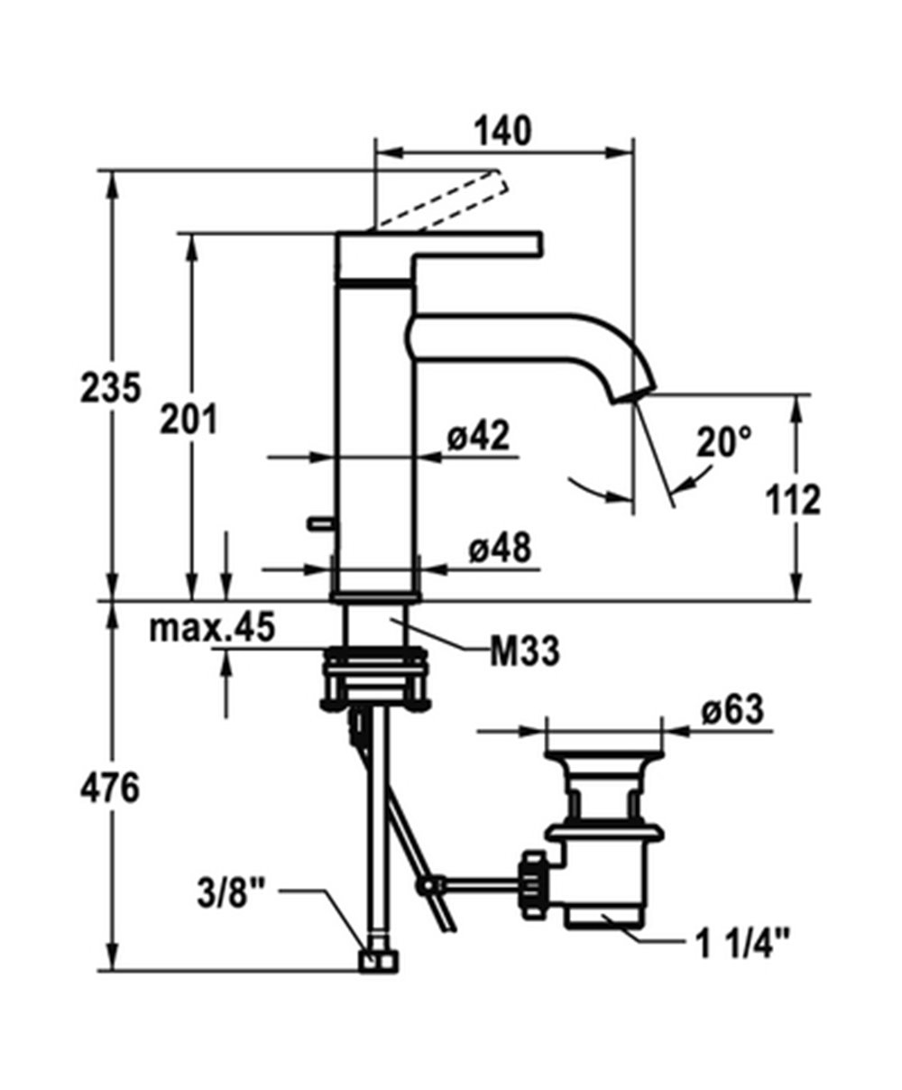 Newform X-T 4204.21 mitigeur haut lavabo + vidage chrome