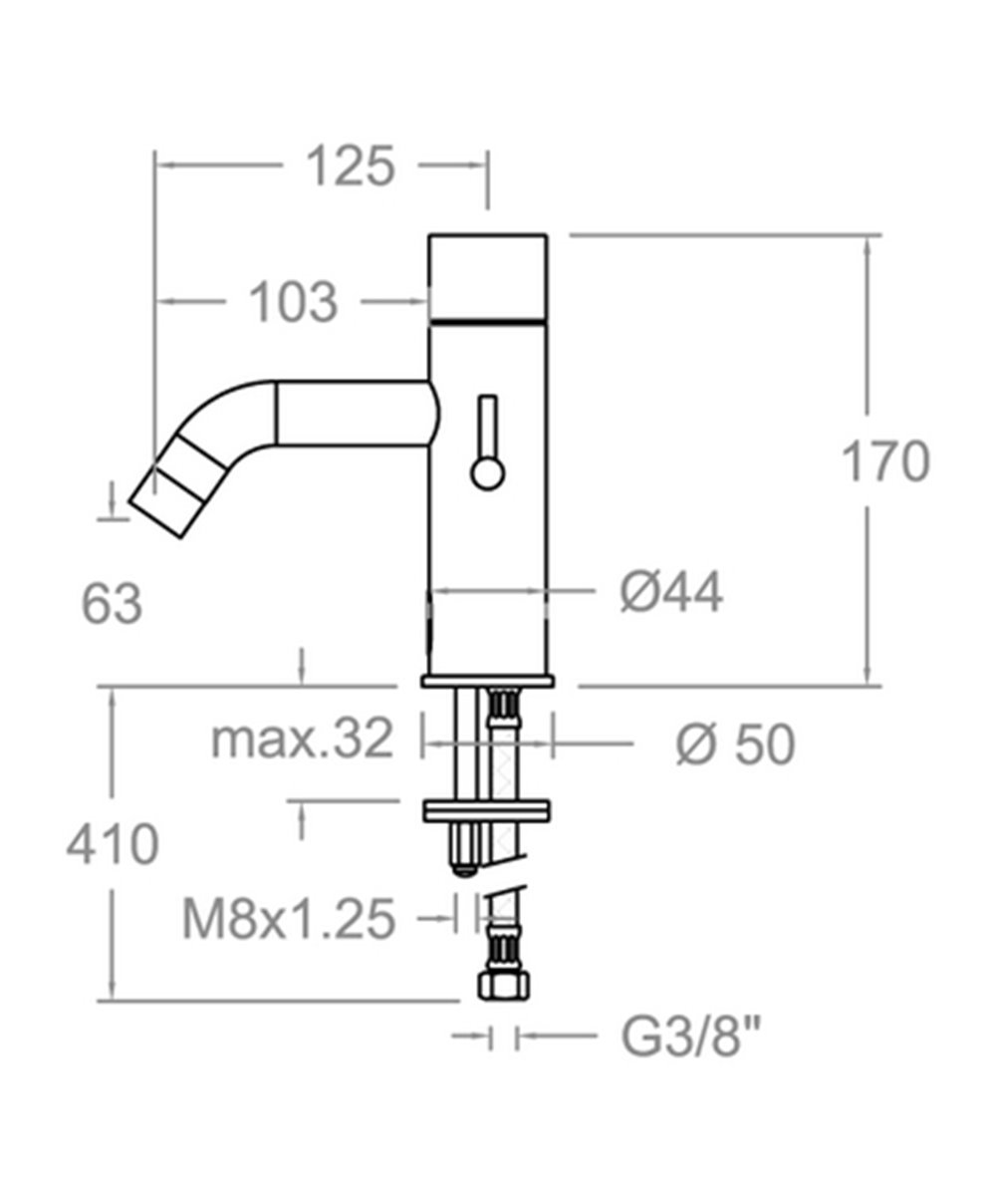 Lavabo sensitive avec mélangeur pour eau froide Fonctionnement automatique bec fixe vanne magnétique raccordement flexible ⅜" sur batterie ou sur...