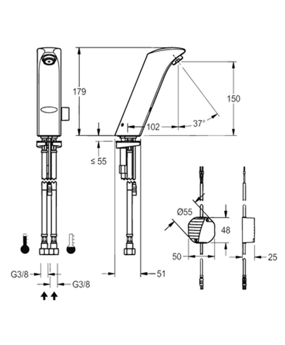 Soltronic robinet électronique pour lavabo / lave-mains avec capteur infrarouge une seule eau Capteur à distance: 15 cm. Non réglable alimentation:...