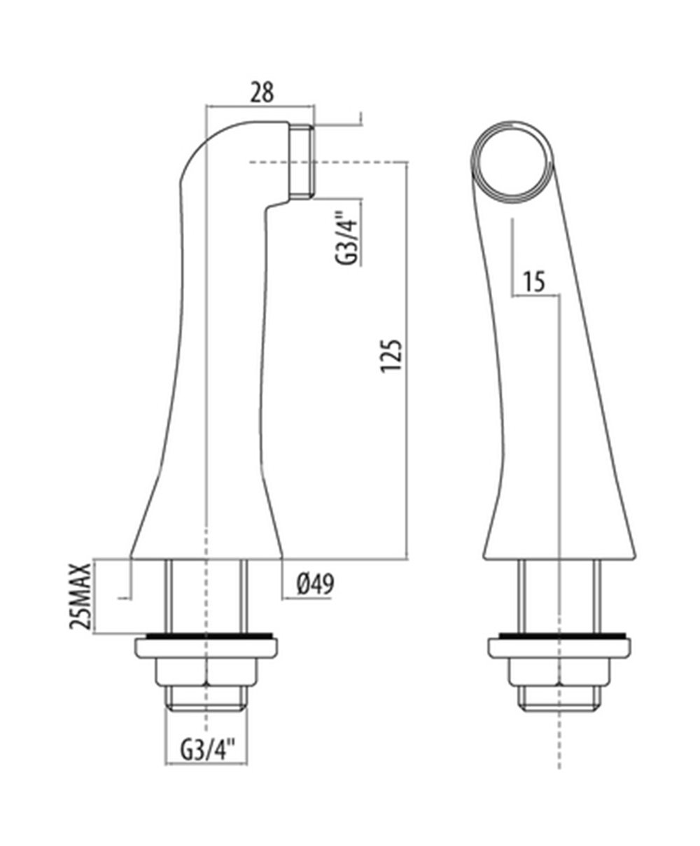 Paire de colonnettes pour montage sur gorge ¾" M x ¾" M - 125 mm