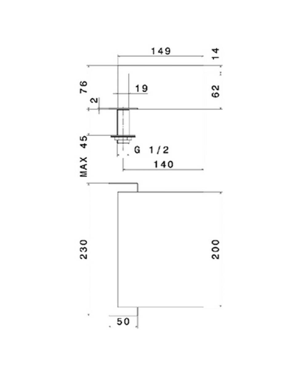 Douche de tête cascade fixation murale dimension totale : 74 x 200 mm