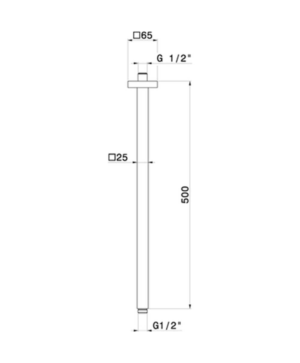 Bras de douche vertical carré 500 mm