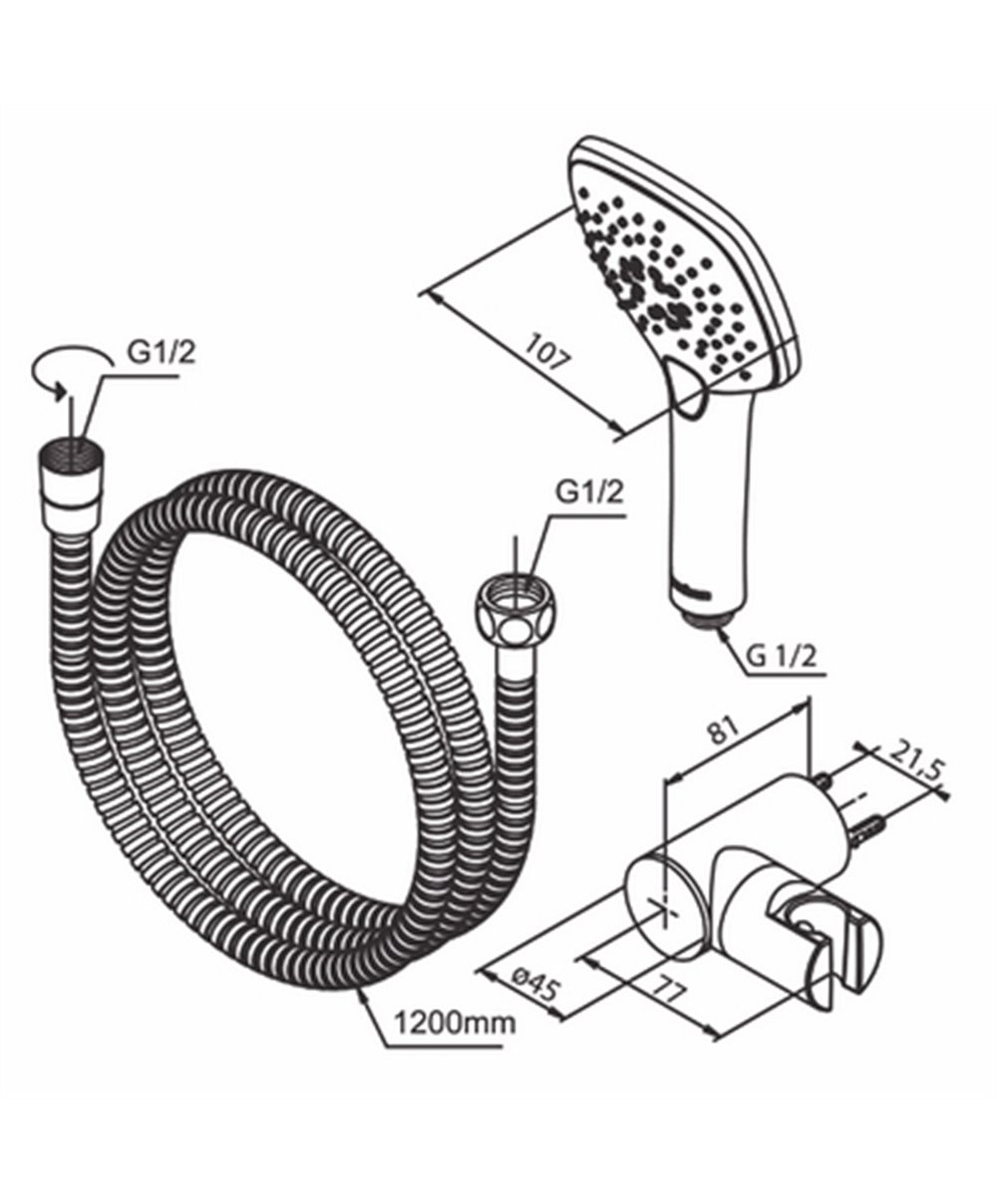 Set de douche douchette, support et flexible