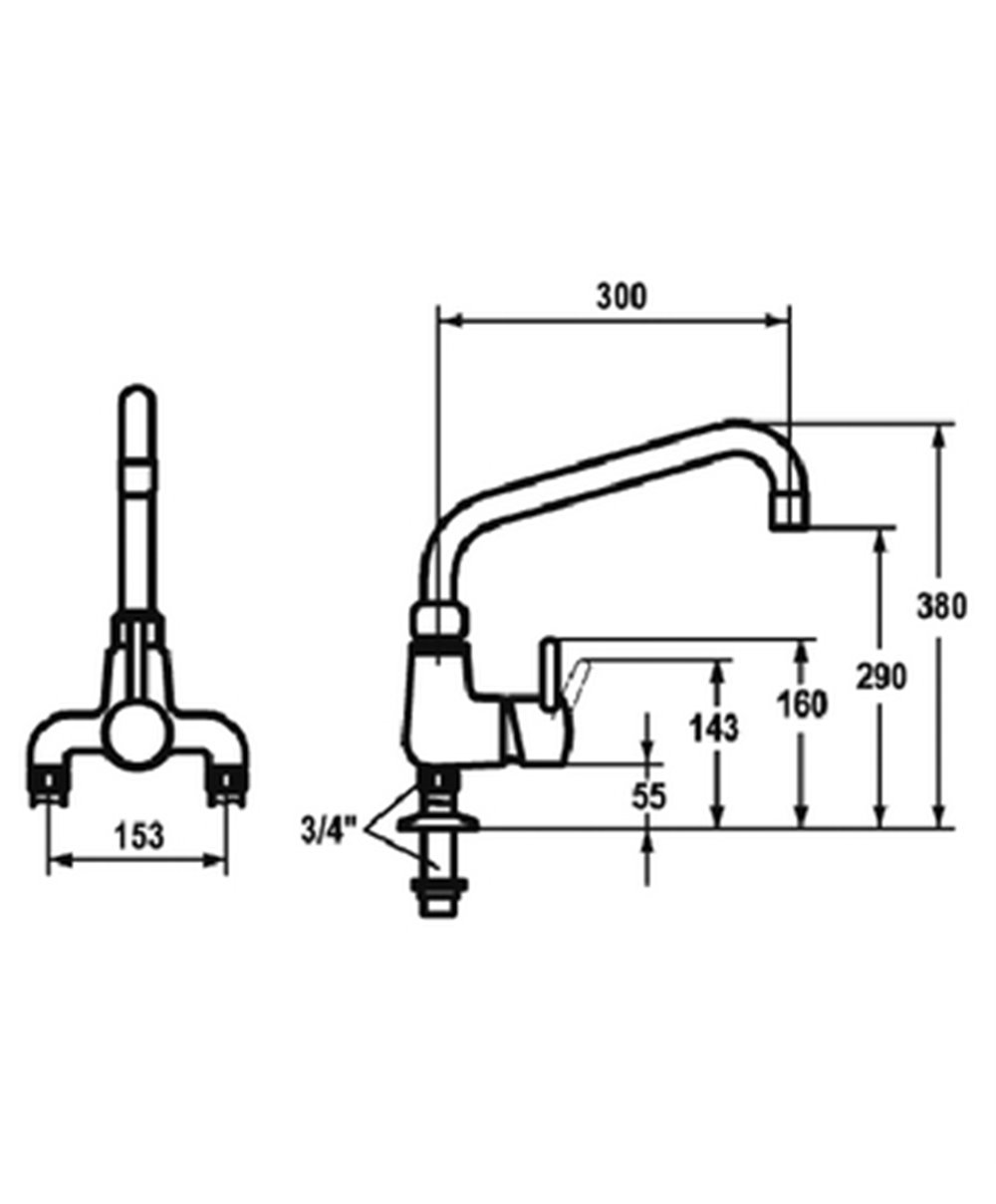 Gastro Mitigeur sur colonettes à bec 300mm et levier long bec orientable 120° Kwc cartouche L 39 - universelle raccords colonnette ½" x ¾" L 55 A =...