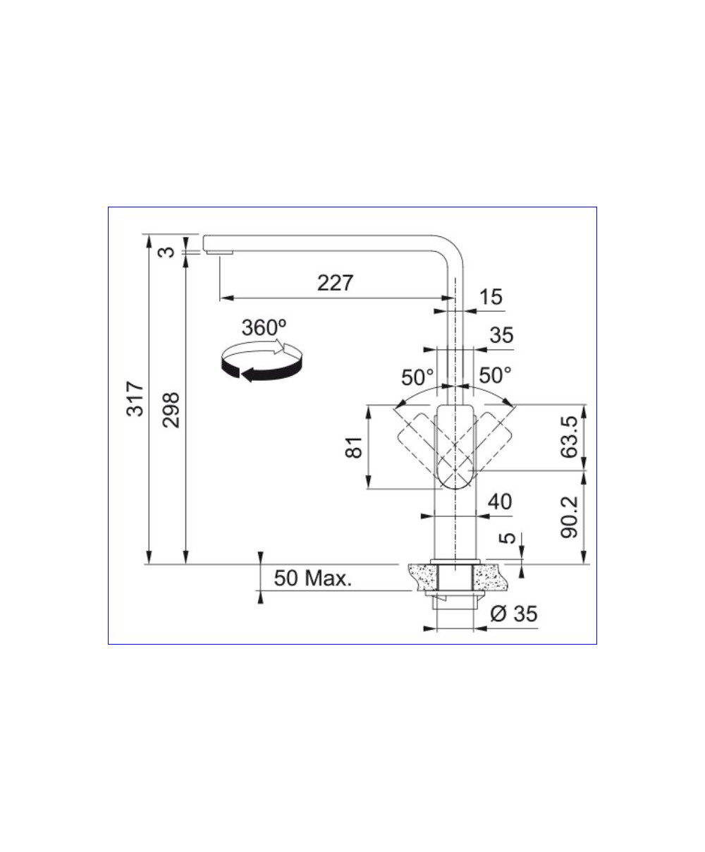 Mitigeur d'évier avec : bec mobile : 360° hauteur : 317 mm - saillie : 227 mm raccordement par flexibles