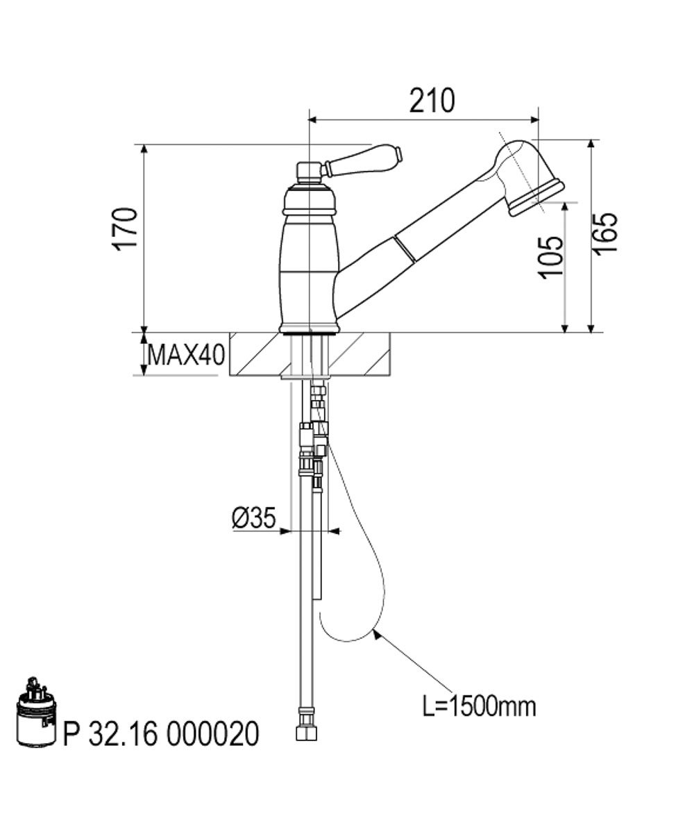 Eve mitigeur à levier avec : col de cygne bec extractible hauteur : 419 mm saillie : 225 mm mécanisme Z 534 836 115 0308 181 - 115 0308 183 Hauteur...
