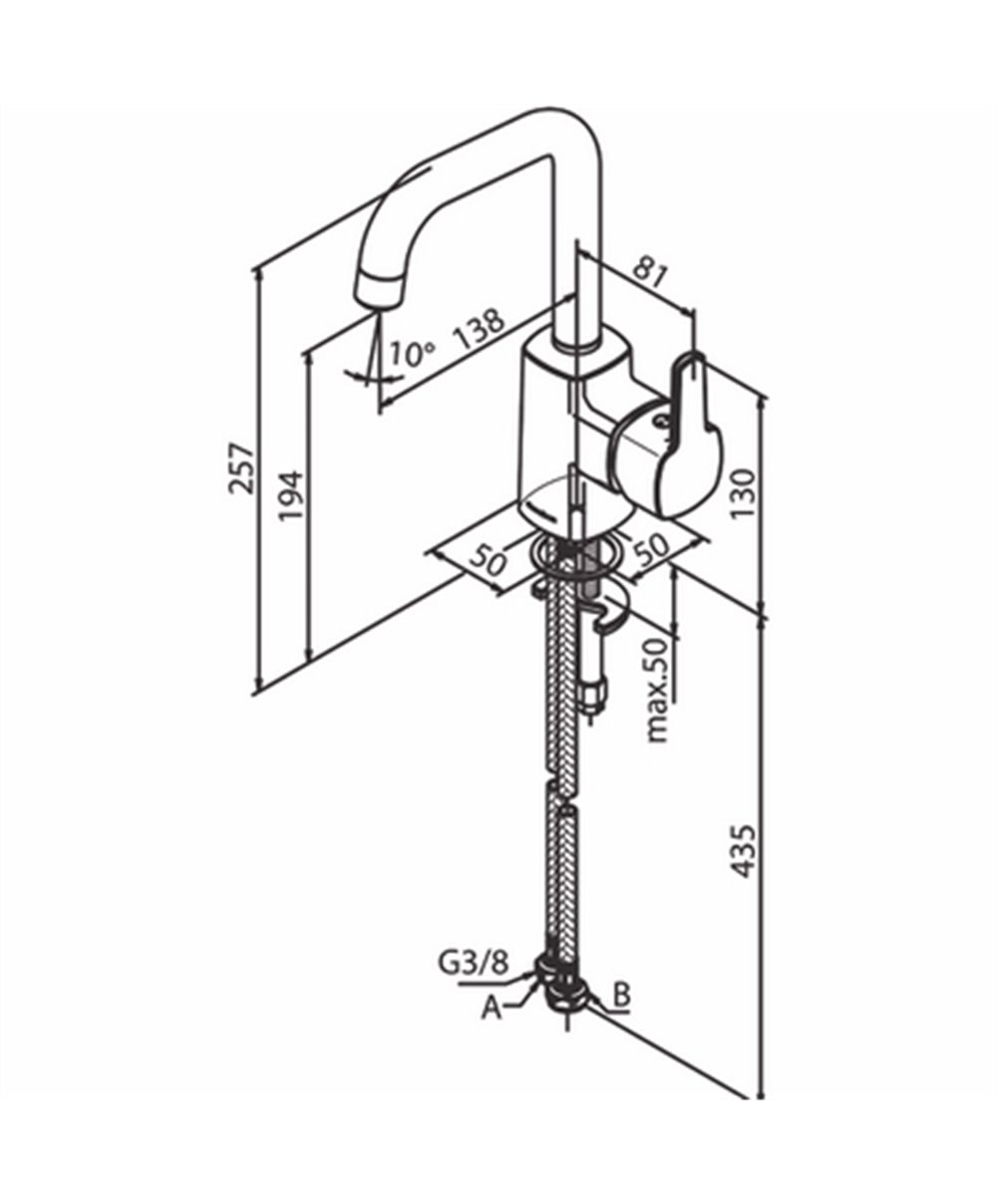 Mitigeur réhaussé de lavabo saillie 141 mm, hauteur 316 mm sans vidage