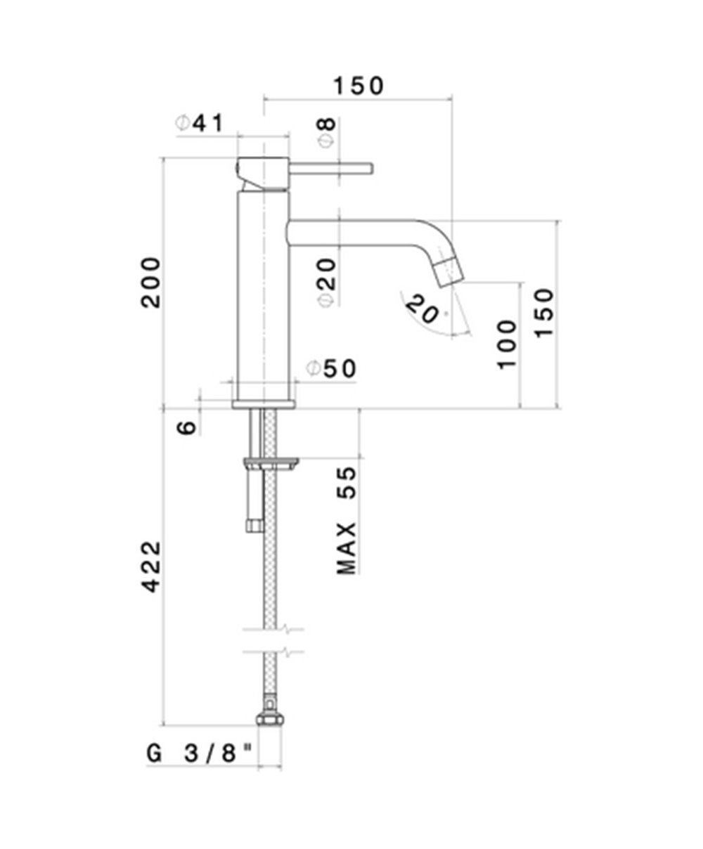 Mitigeur de lavabo saillie 150 mm sans vidage mécanisme 14720 raccordement flexibles 3/8"