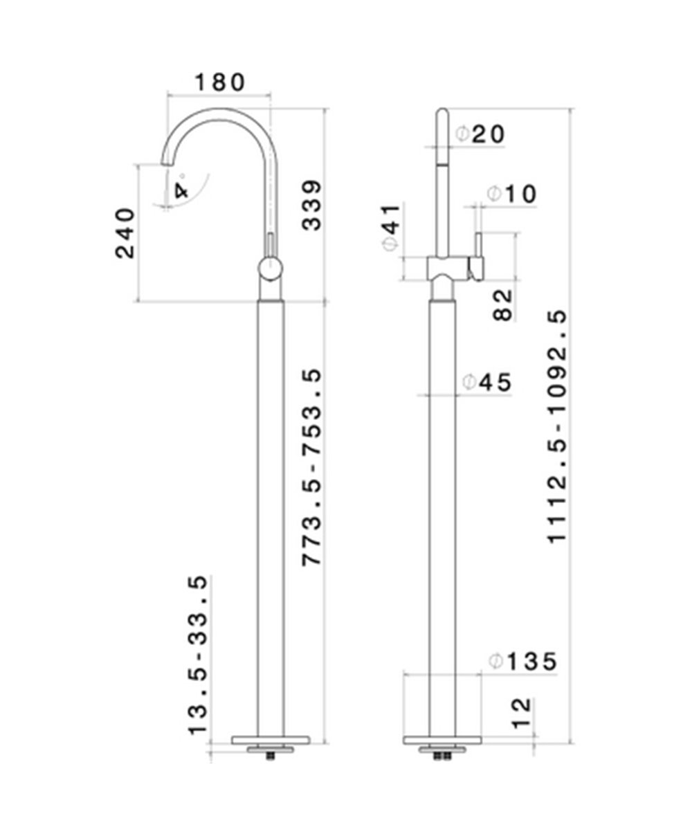 Mitigeur de lavabo sur colonne - partie externe saillie : 180 mm sans vidage ! à compléter avec le corps encastré 27819