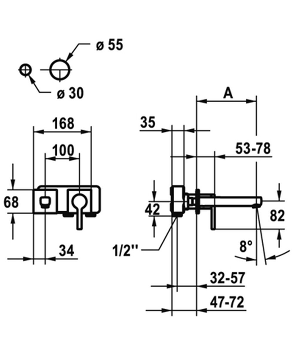 Façade pour mitigeur mural de lavabo saillie 175 ou 225 mm cartouche M 35 H à compléter avec un corps encastré 39.001.402.000 615.0637.369 - 615.0637.370