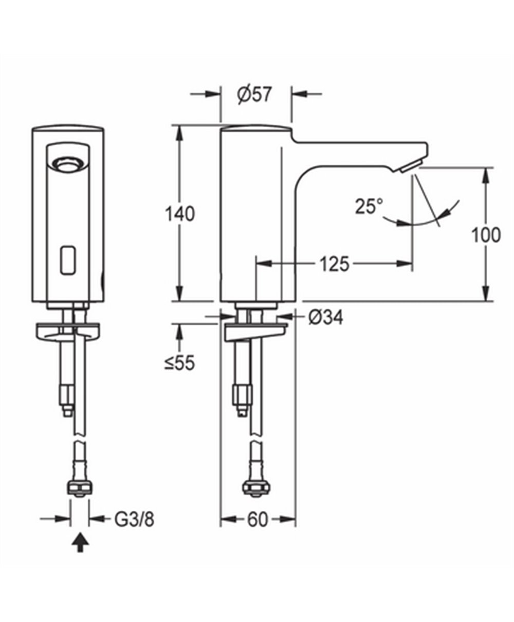 Lavabo sensitive avec mélangeur pour eau froide Fonctionnement automatique bec fixe vanne magnétique raccordement flexible ⅜" sur batterie ou sur...