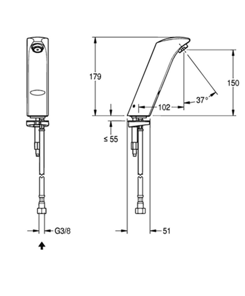 Robinet pour lavabo / lave-mains avec capteur infrarouge une seule eau capteur à distance 10 cm. Non réglable alimentation: batterie 9 V (non...
