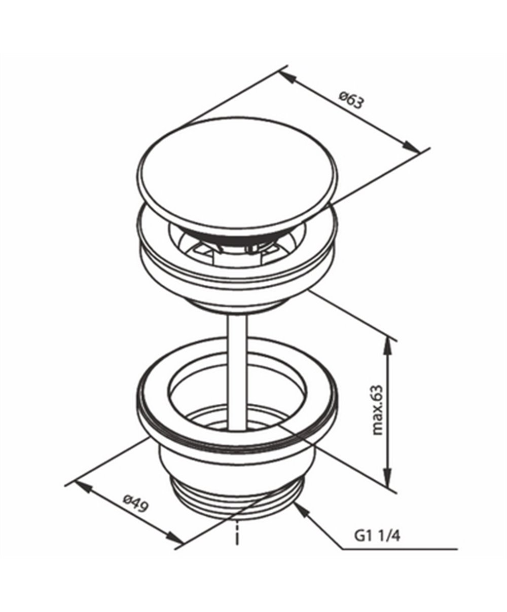 Vidage Ø 63 - 1 1/4" - Toujours Ouvert pour lavabo sans trop plein