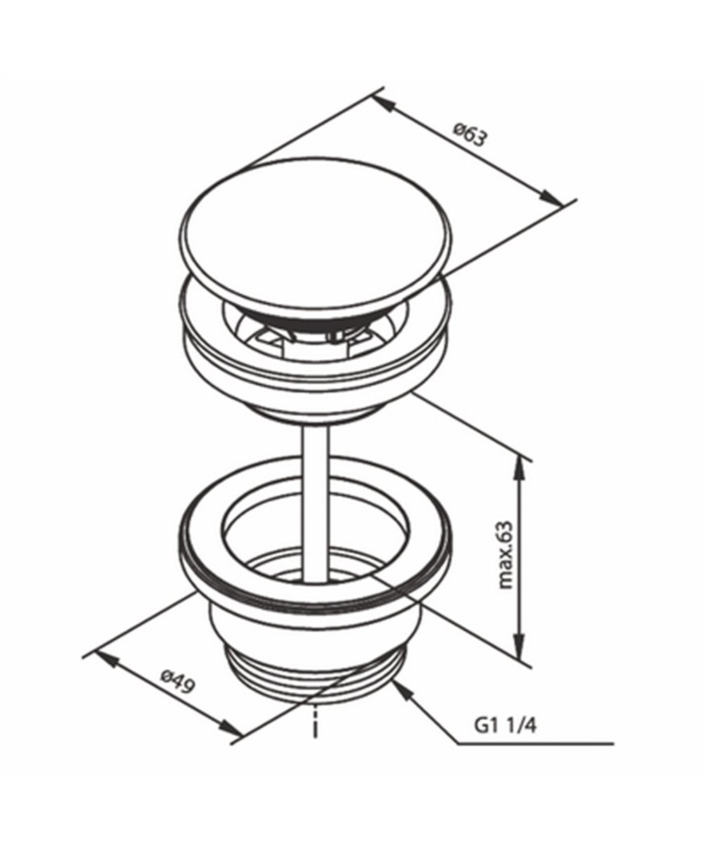 Vidage Ø 63 - 1 1/4" - Toujours Ouvert pour lavabo sans trop plein